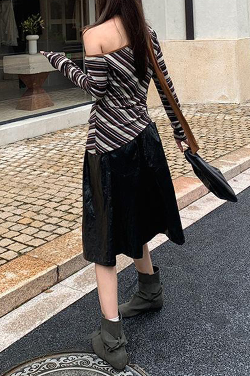Your new statement piece with striking stripes and an asymmetrical cut. Perfect for adding a chic touch to your evening ensemble.