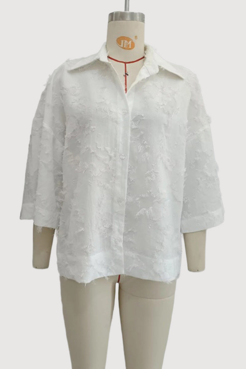 • Textured Button-Down Blouse