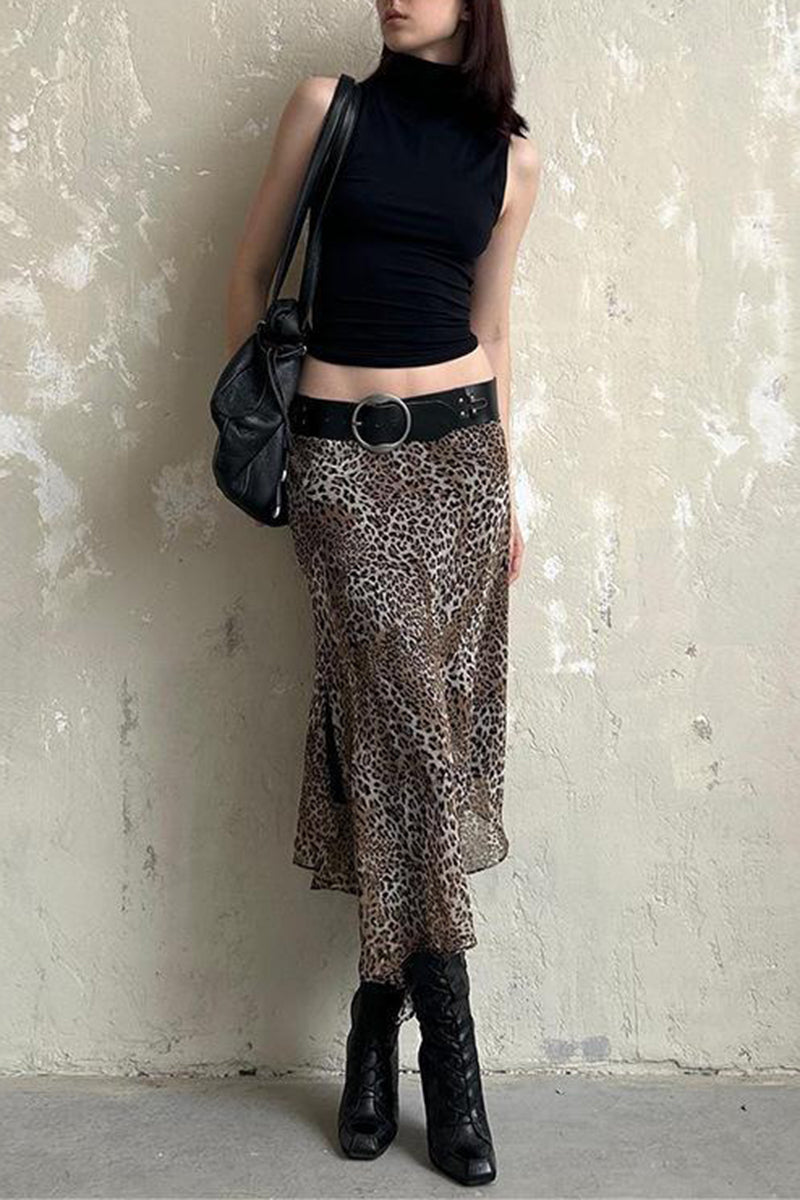 Your new go-to skirt features a striking asymmetric hem and eye-catching leopard pattern. Instantly elevates your style, suitable for both casual and formal occasions.