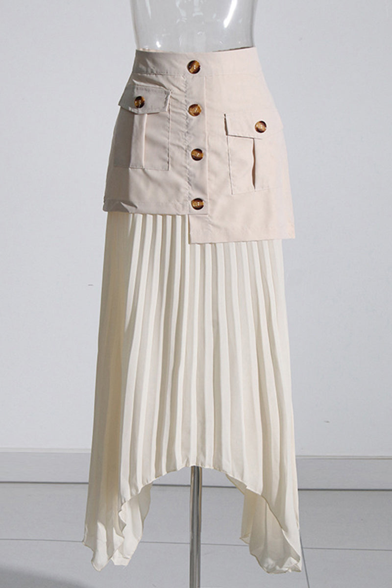 Your new go-to skirt showcases an elegant pleated design with statement buttons. Effortlessly transitions from day to night, perfect for various occasions.