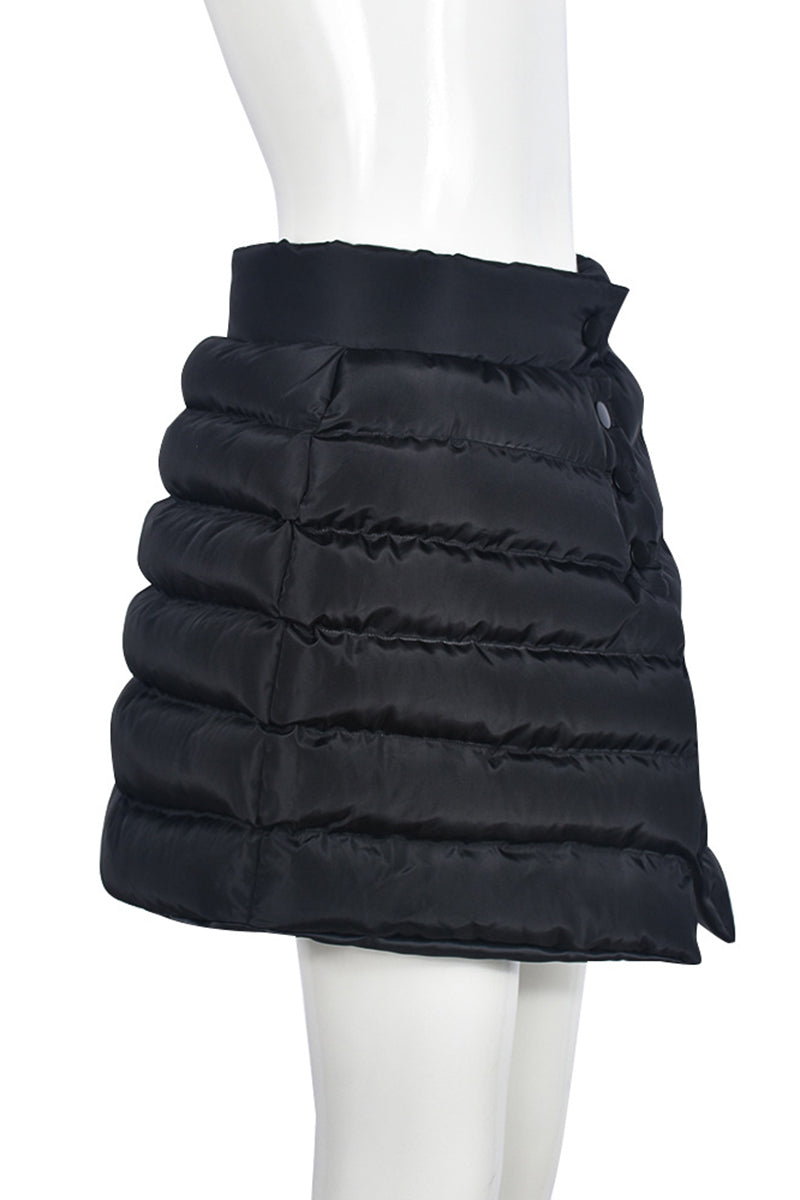 Your new go-to mini skirt features a chic buttoned design and contemporary quilted style. Effortlessly elevates your outfit for any occasion, from casual outings to evening gatherings.