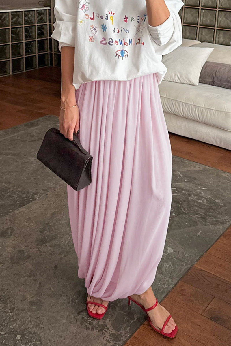 Your new chic maxi skirt features an elegant drape and a sophisticated high slit. Perfect for formal occasions, it effortlessly elevates your evening style.