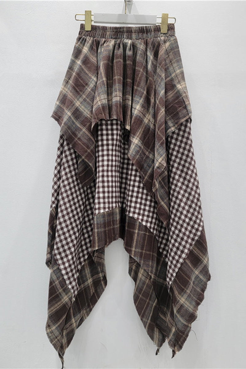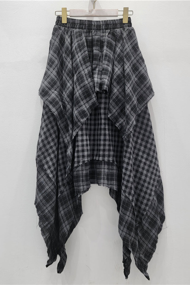 Draped Plaid Maxi Skirt with Asymmetric Hem