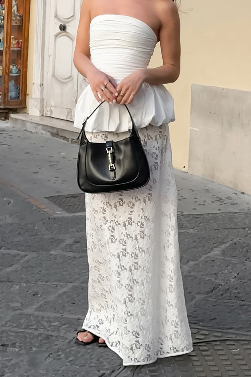 Your new statement piece features an elegant lace design that adds sophistication to any ensemble. Perfect for effortlessly elevating your style for day-to-night occasions.