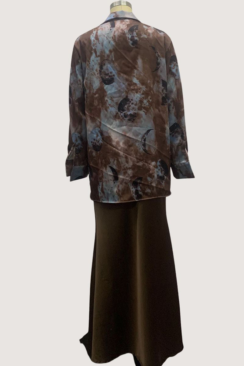 Your new sophisticated set effortlessly blends a chic blouse with a flowing maxi skirt. Perfect for both formal events and stylish evenings out.