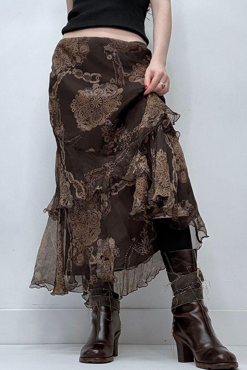 Your new go-to skirt features a flowing layered design with intricate patterns. Effortlessly transitions from day to night, making it perfect for various occasions.