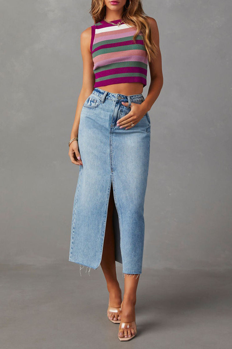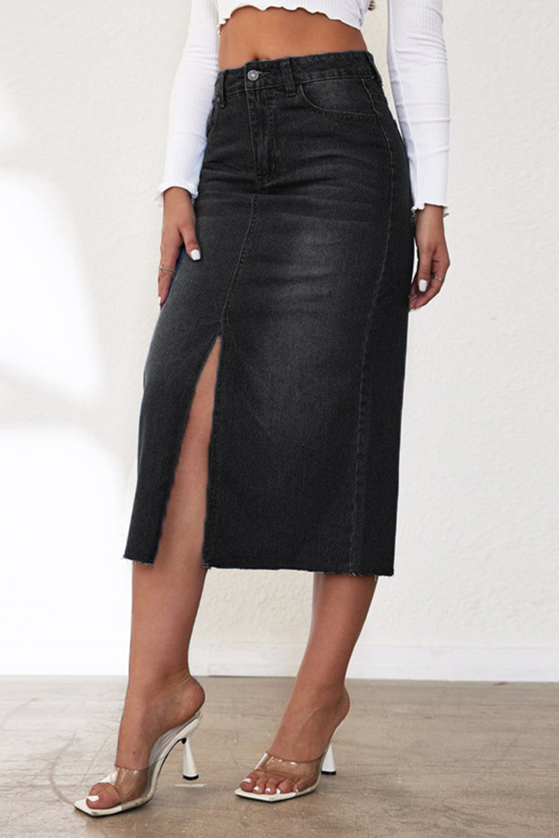 Your new essential skirt offers a stylish high-slit detail for added flair. Effortlessly chic for day or evening occasions, it's a versatile wardrobe staple.