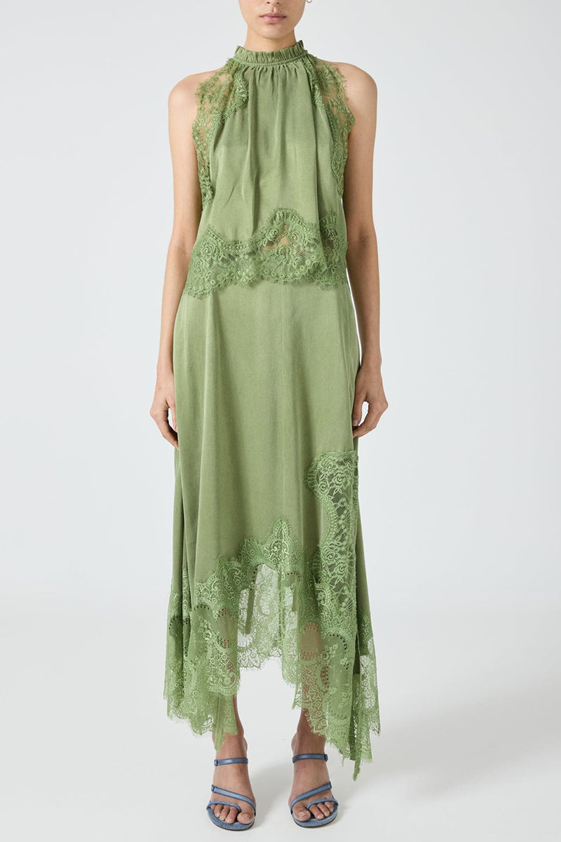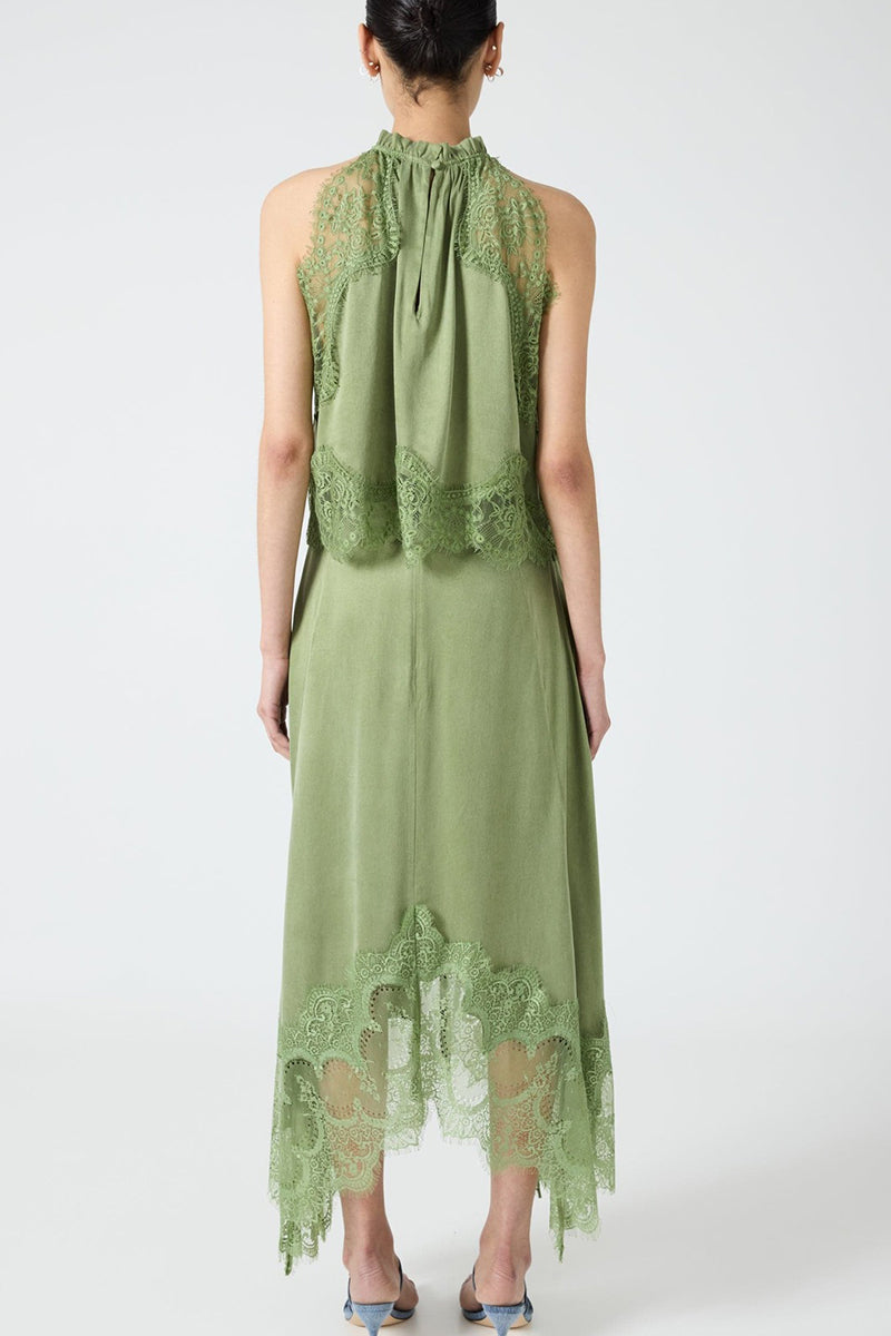 - Lace Trim Sleeveless Top & Slit Skirt Set