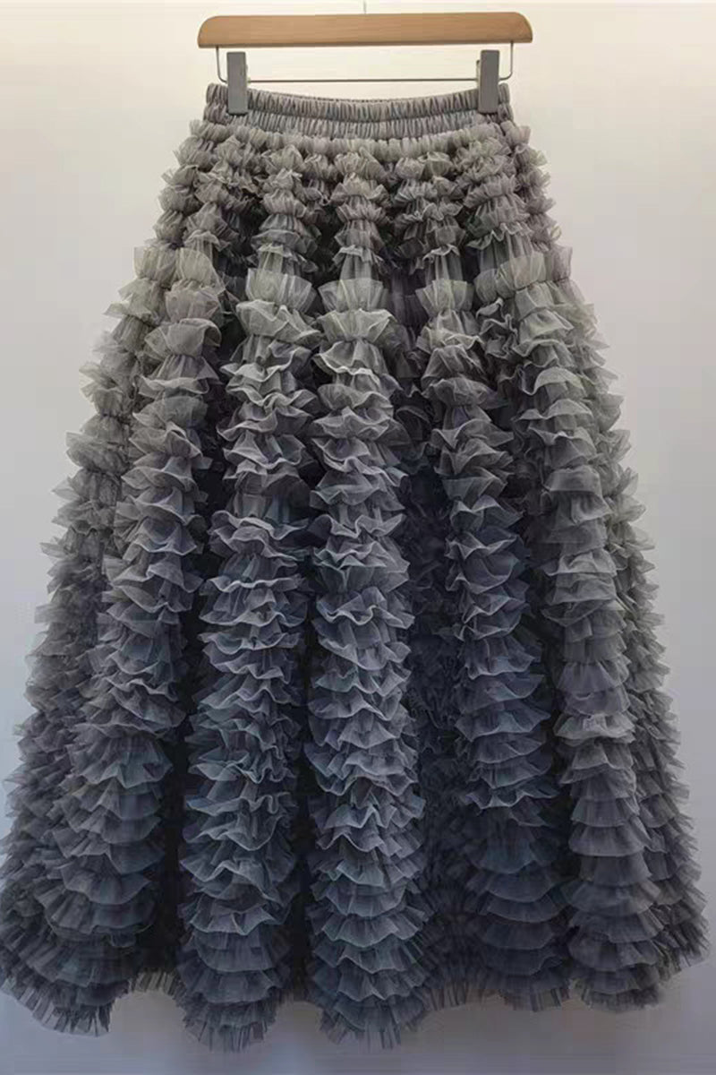Your new show-stopping skirt boasts a dramatic ruffle design that adds volume and movement. Perfect for both casual and formal occasions, making it a versatile wardrobe addition.