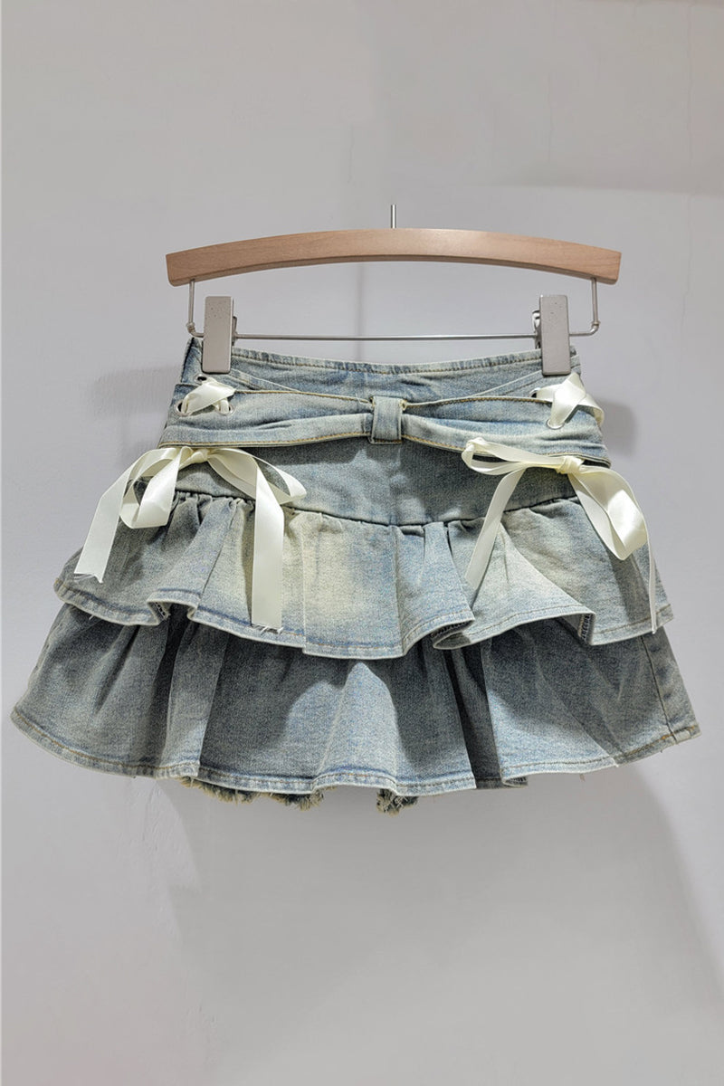 - Layered Ruffle Mini Skirt with Bows