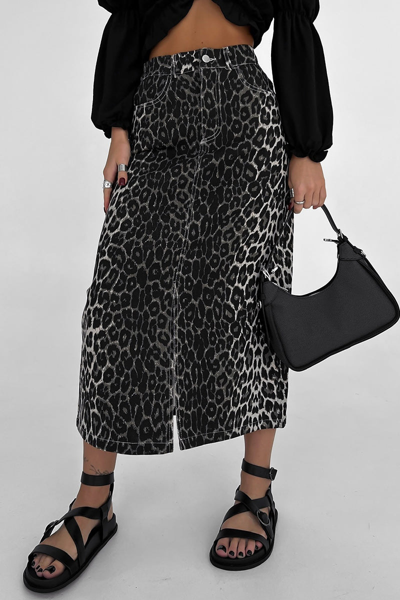Your new go-to skirt features a striking leopard print that adds a bold touch to any outfit. Perfectly versatile for both casual days and evening events.