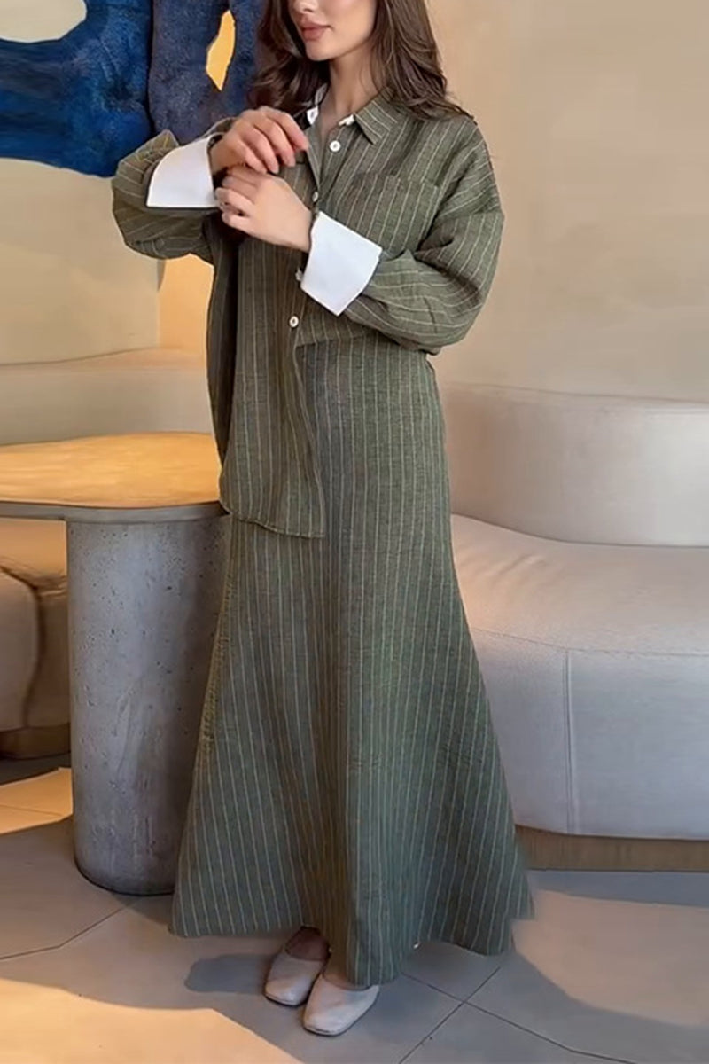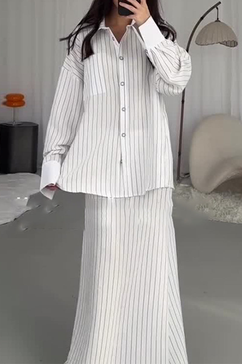 - Pinstripe Long-Sleeve Mermaid Skirt Set