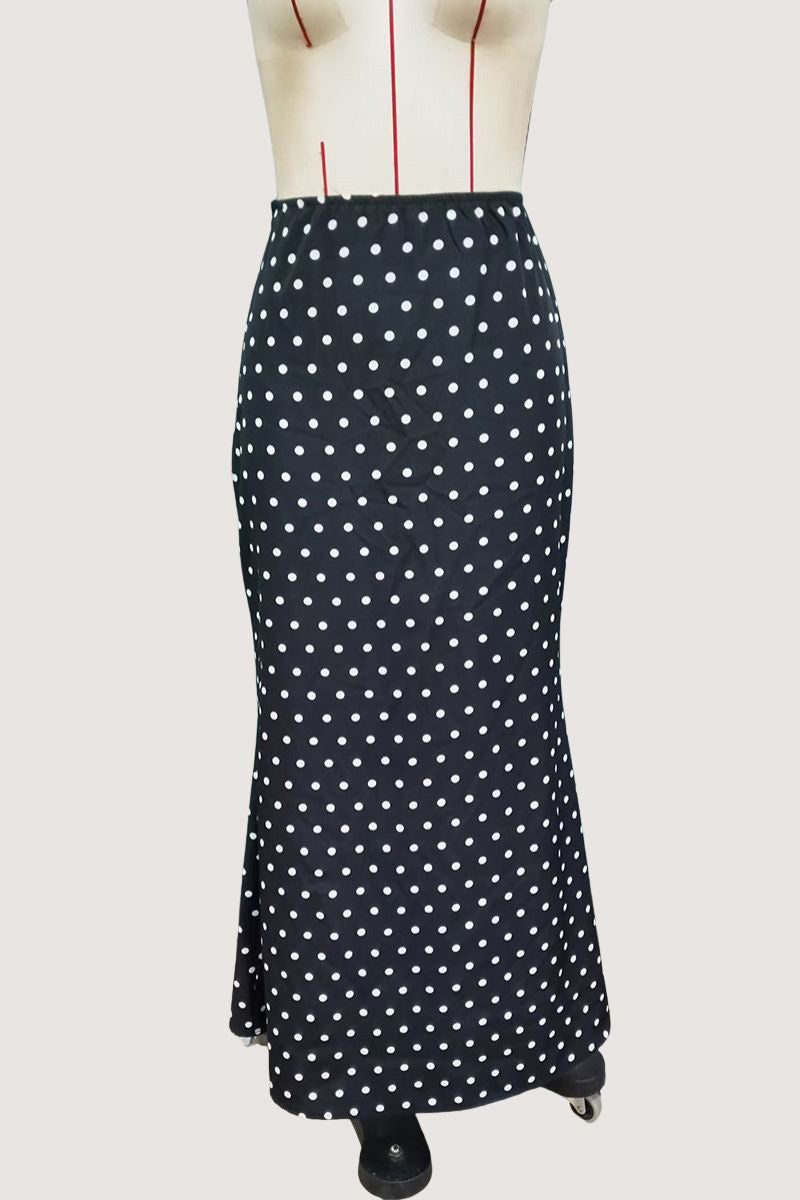 Your new favorite maxi skirt features a chic polka dot pattern and elegant silhouette. Effortlessly stylish, making it ideal for both casual and formal occasions.