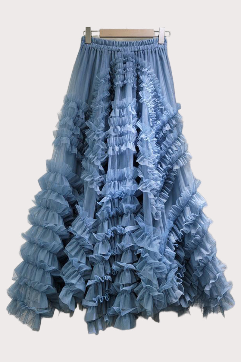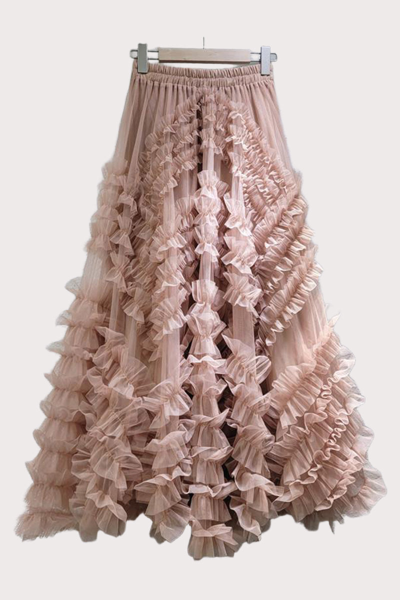 Your new elegant maxi skirt features a cascade of delicate ruffles. Perfect for both casual outings and formal events, elevating any look.