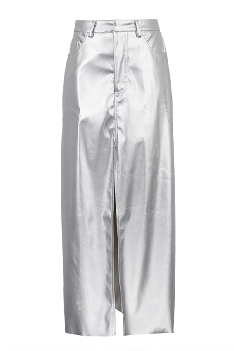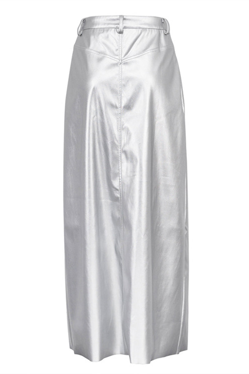 Your new go-to skirt flaunts a sophisticated metallic sheen and elegant maxi length. Perfect for day-to-night transitions, enhancing versatility for various occasions.