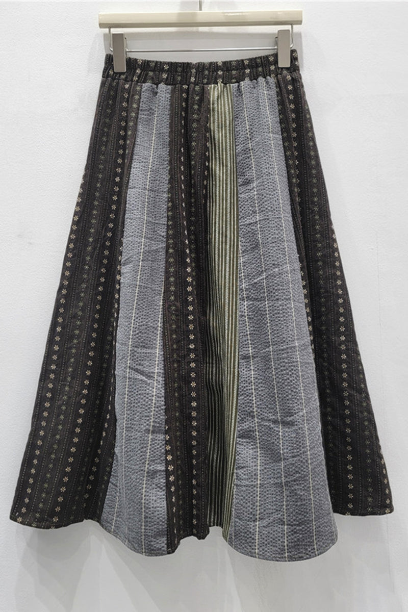Your new go-to skirt showcases a dynamic patchwork design. Effortlessly elevates any outfit, perfect for versatile styling from day to night.