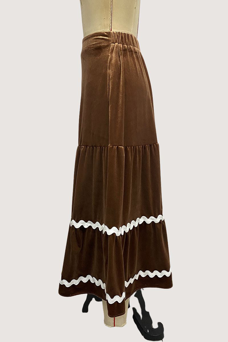 Your new favorite skirt features a tiered silhouette with contrast trim detailing for added style. Perfect for transitioning from casual outings to elegant evenings effortlessly.