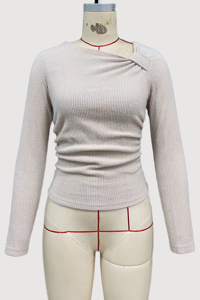 Your new wardrobe essential features an asymmetrical neckline with long sleeves for a chic look. Versatile enough to pair with denim or formal skirts, perfect for all-day wear.