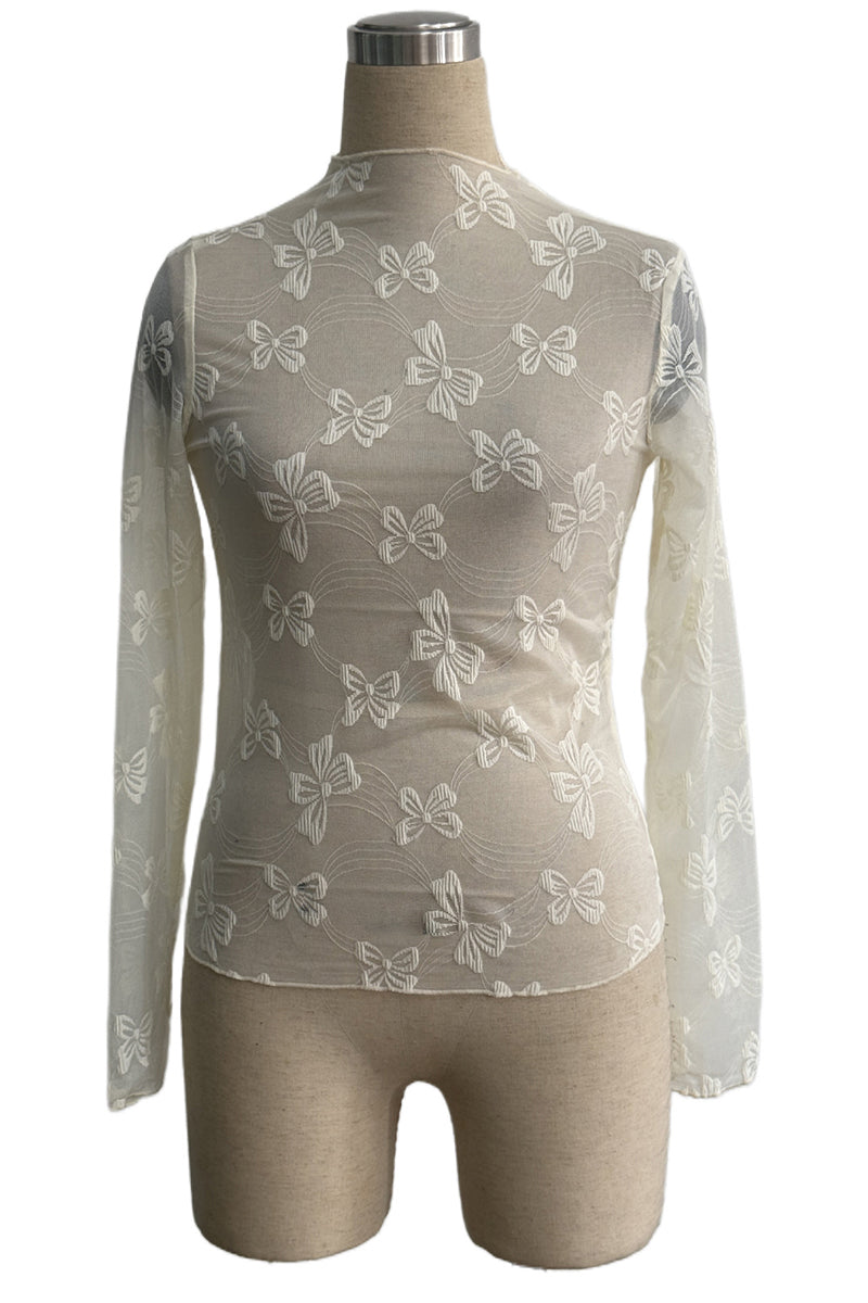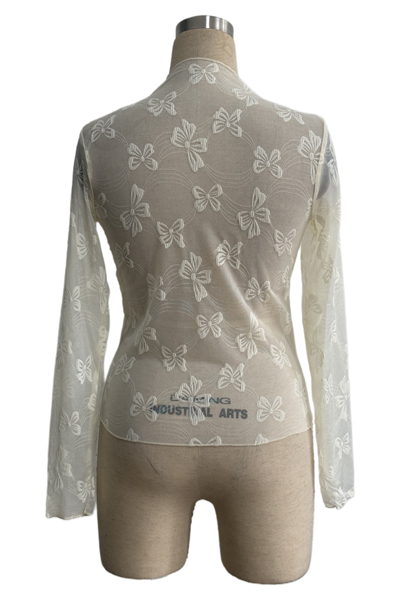 Your new statement piece features delicate bow pattern and a chic sheer design. Perfectly pairs with jeans for a stylish and versatile outfit.