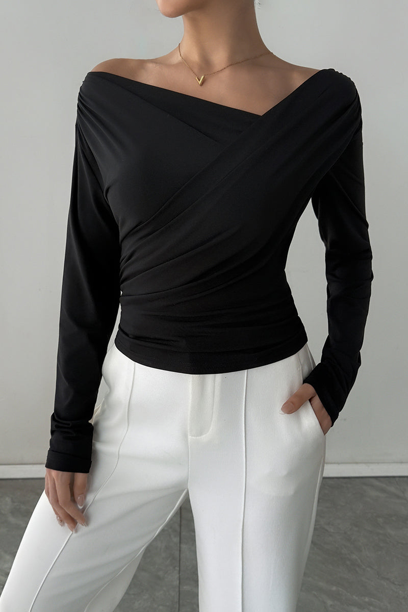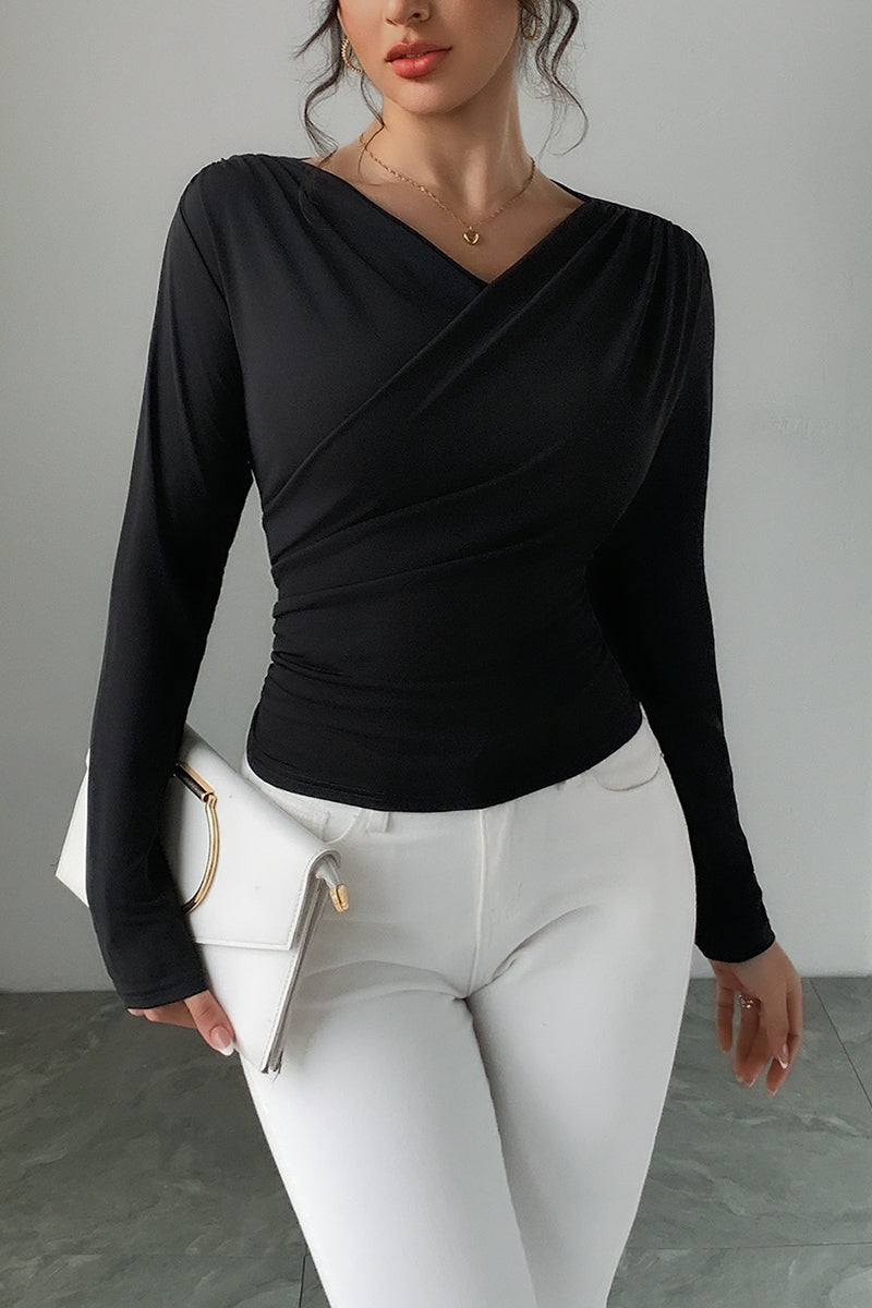 Your new statement blouse features a chic cross-front design that elevates any ensemble. Perfect for pairing with trousers or skirts, transitioning effortlessly from office to evening events.