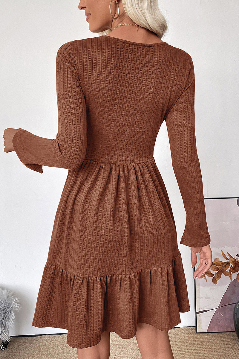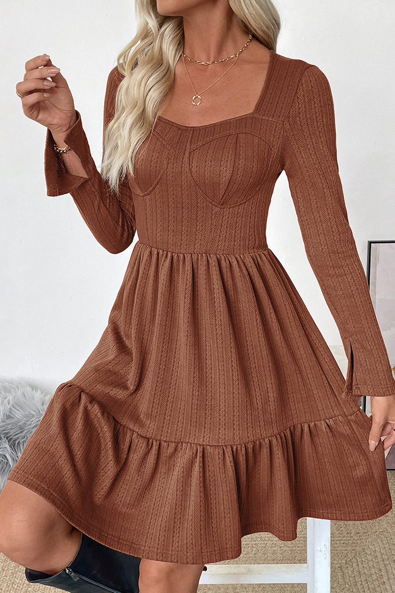 Your new go-to dress features a flattering fit and flare silhouette and elegant long sleeves. Effortlessly transitions from day to evening, making it ideal for various casual occasions.
