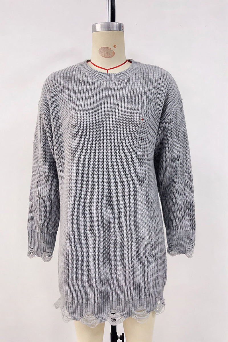 Your new go-to dress features a crew neck and relaxed fit with distressed hem details. Your new casual outfit effortlessly combines comfort and style for everyday wear.