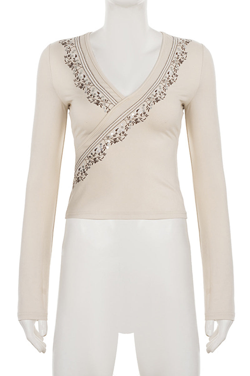 Your new stylish top features intricate pattern and a flattering wrap design. Perfect for office wear or casual outings.