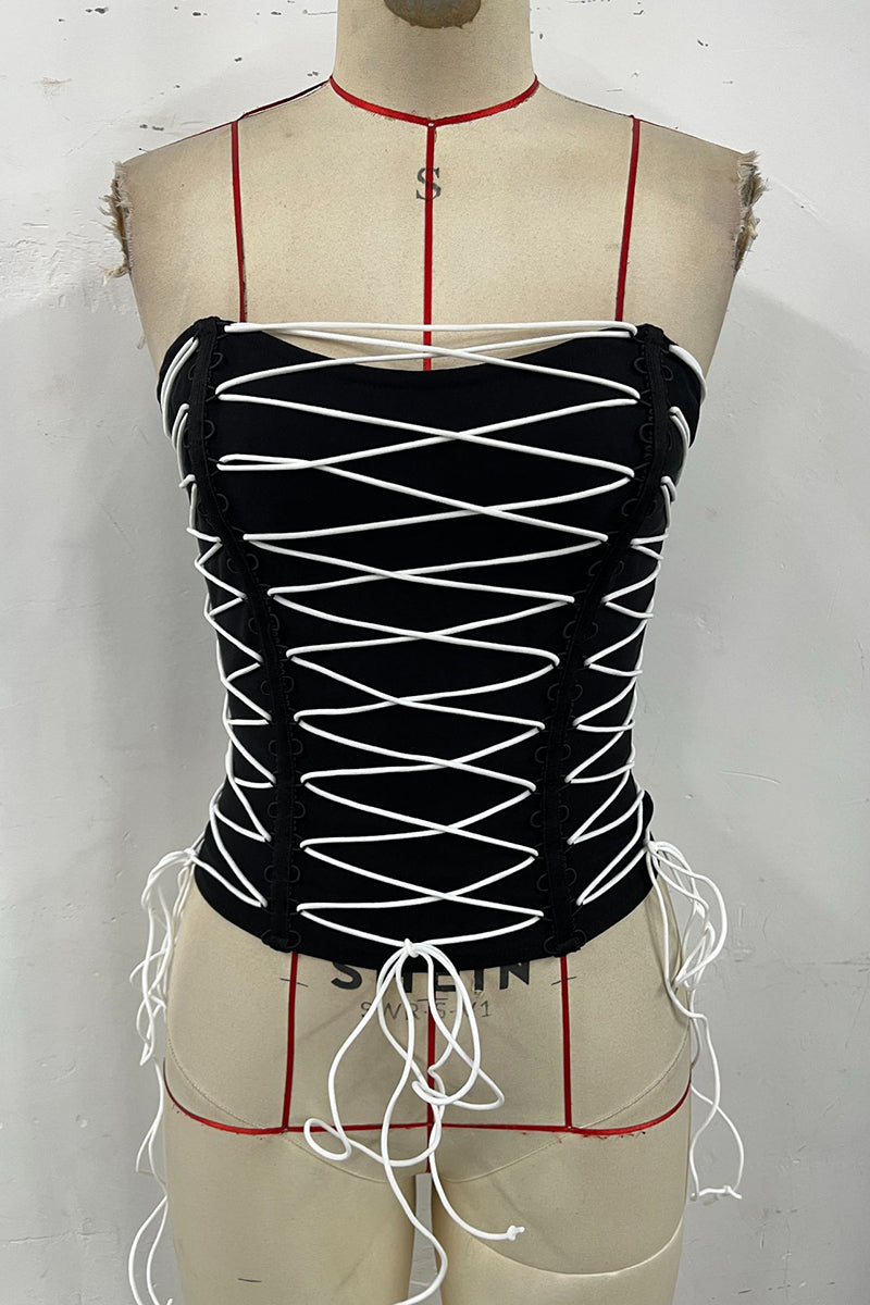 Your new statement piece features an intricate lace-up design that enhances your silhouette. Perfectly versatile for layering or wearing solo on a night out.
