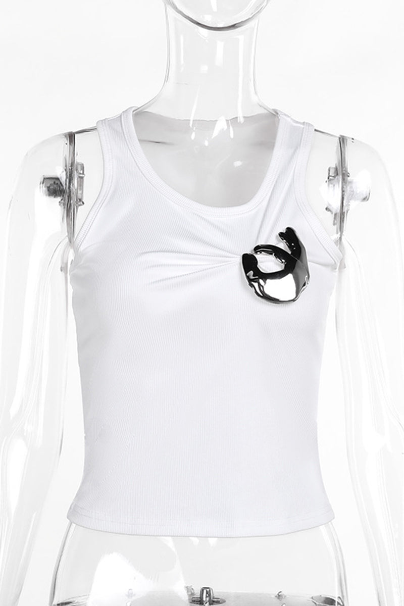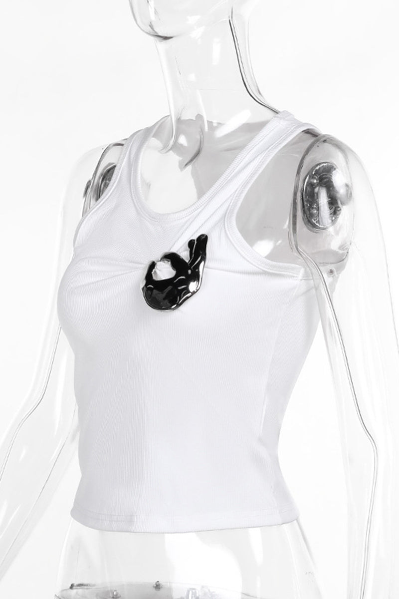 Your new go-to tank top features a unique sculptural accent that captures attention. Effortlessly combines art and fashion, perfect for adding flair to your outfit.