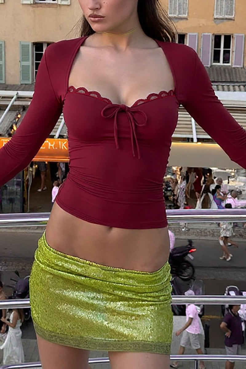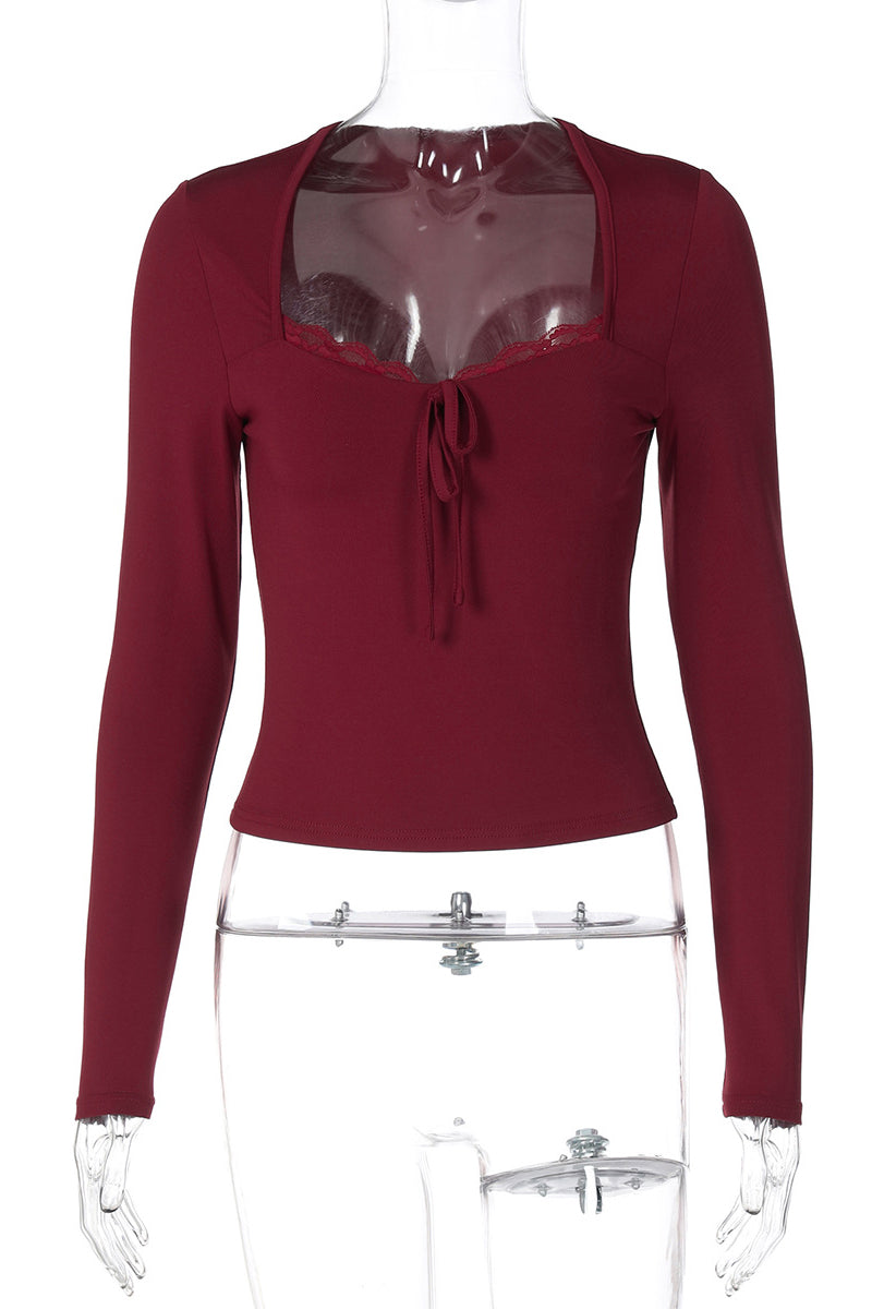 Elegant Long-Sleeve Lace Trim Top