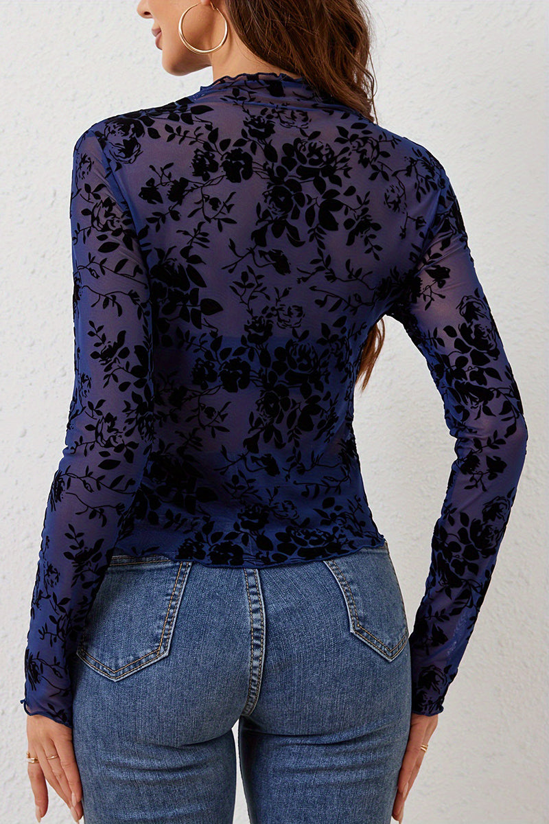 Your new go-to top showcases a delicate floral design and elegant sheer sleeves. Perfectly suited for both casual outings and evening events.