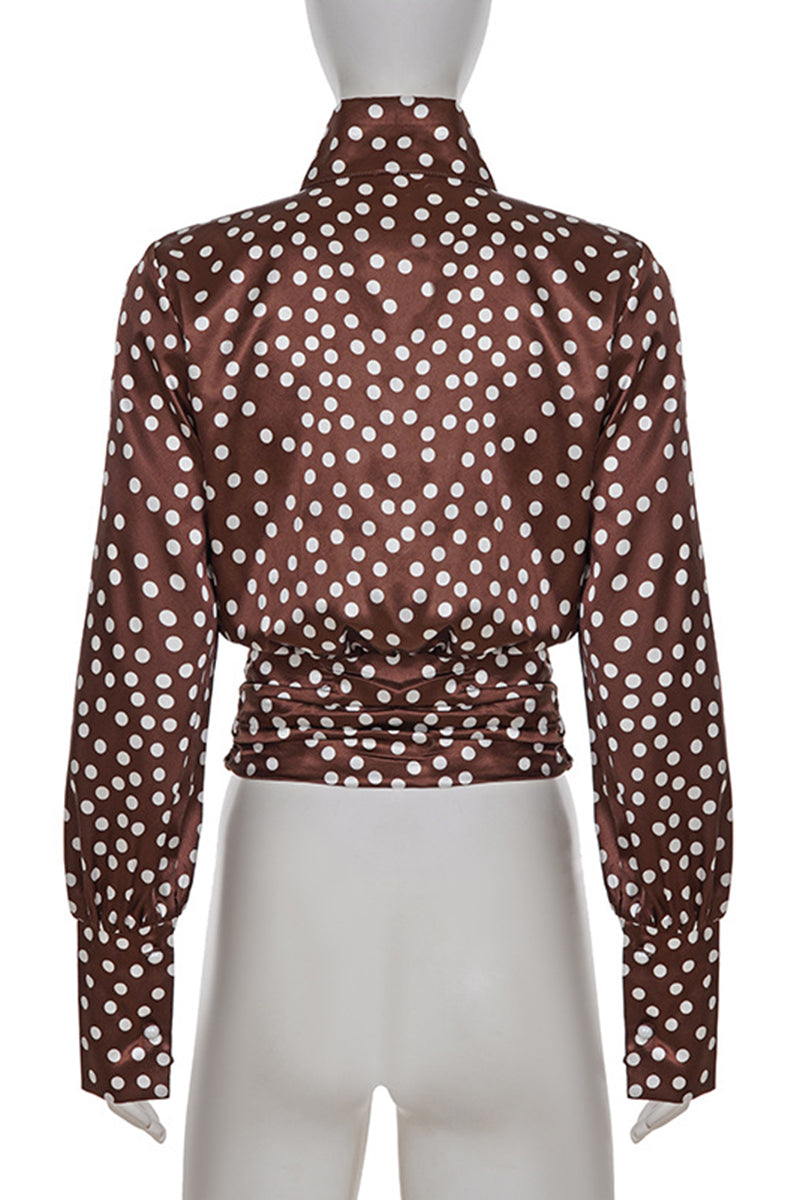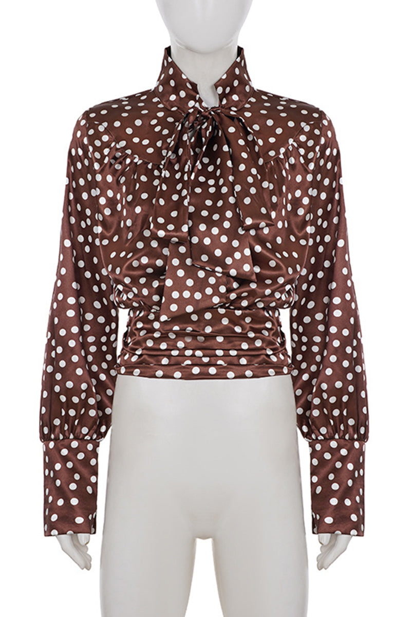Your new stylish blouse features a charming tie-front and playful polka dot pattern. Perfect for elevating your everyday look, whether for work or casual outings.