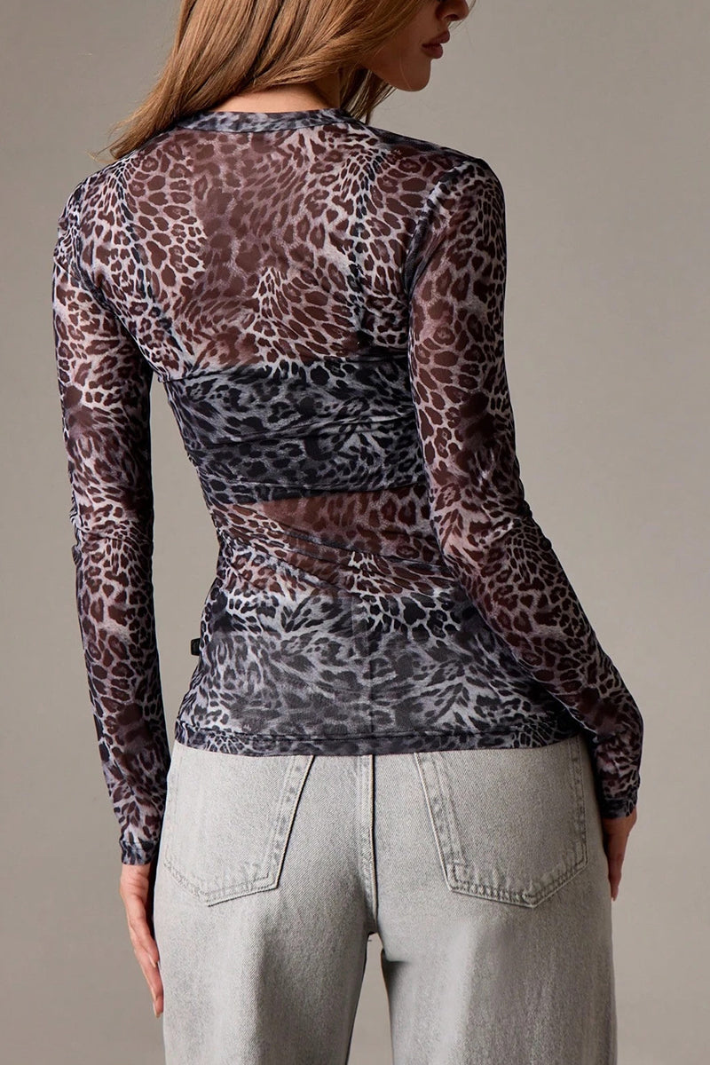 Your new favorite blouse features an eye-catching animal print and a chic sheer design. Effortlessly adds a statement to any ensemble, perfect for day-to-night wear.