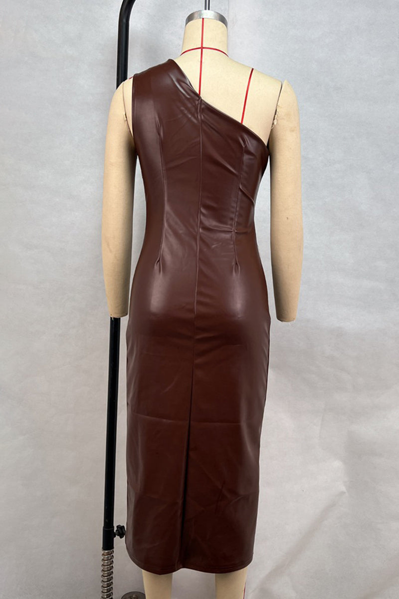 Asymmetric Faux Leather Midi Dress