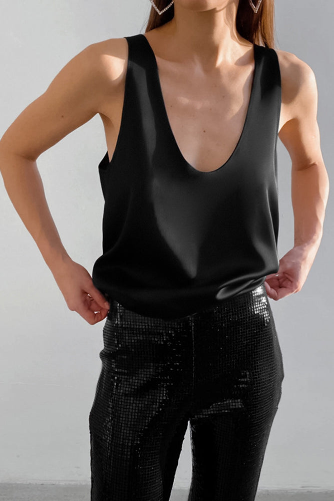 Your new go-to tank top features a chic asymmetrical design with elegant pearl accents. Effortlessly stylish for casual or dressy occasions.