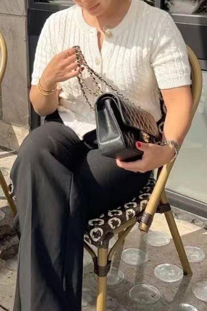 Buttoned Knit Short-Sleeve Cardigan