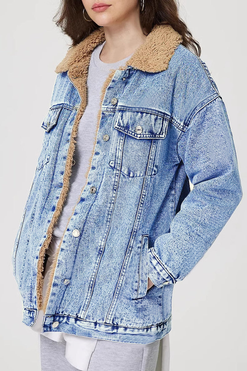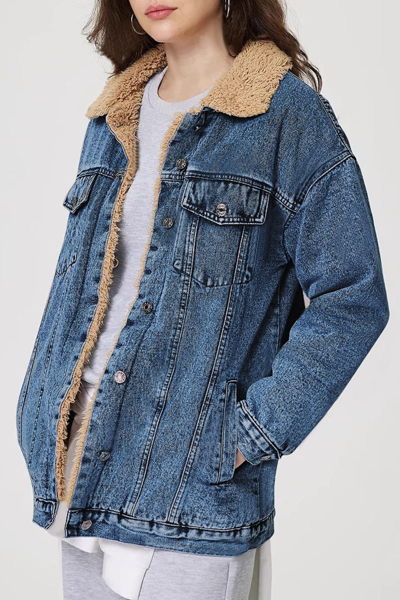 Your new essential jacket offers a cozy faux shearling lining and versatile design. Perfectly suitable for both casual outings and transitional weather days.