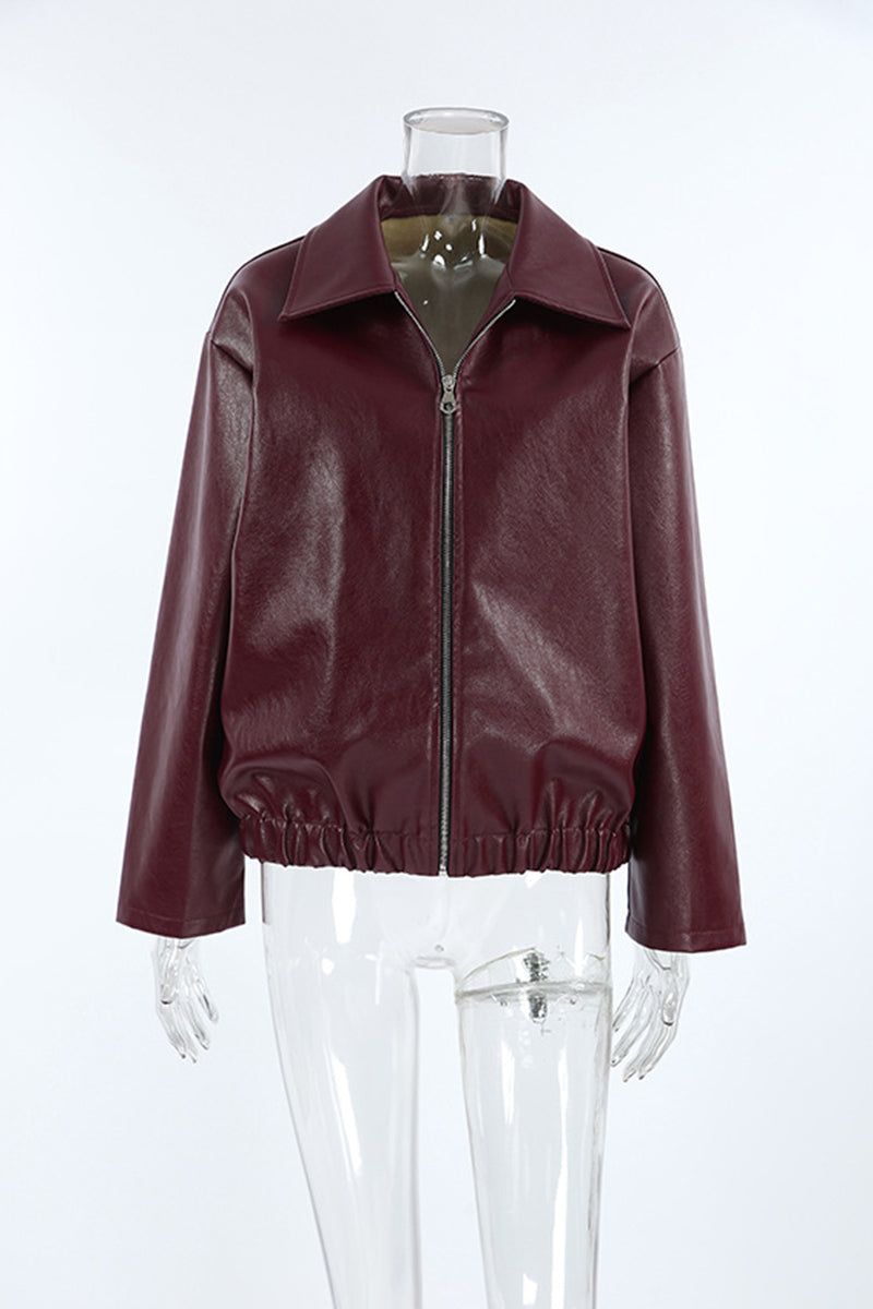 Chic Zip-Front Faux Leather Jacket