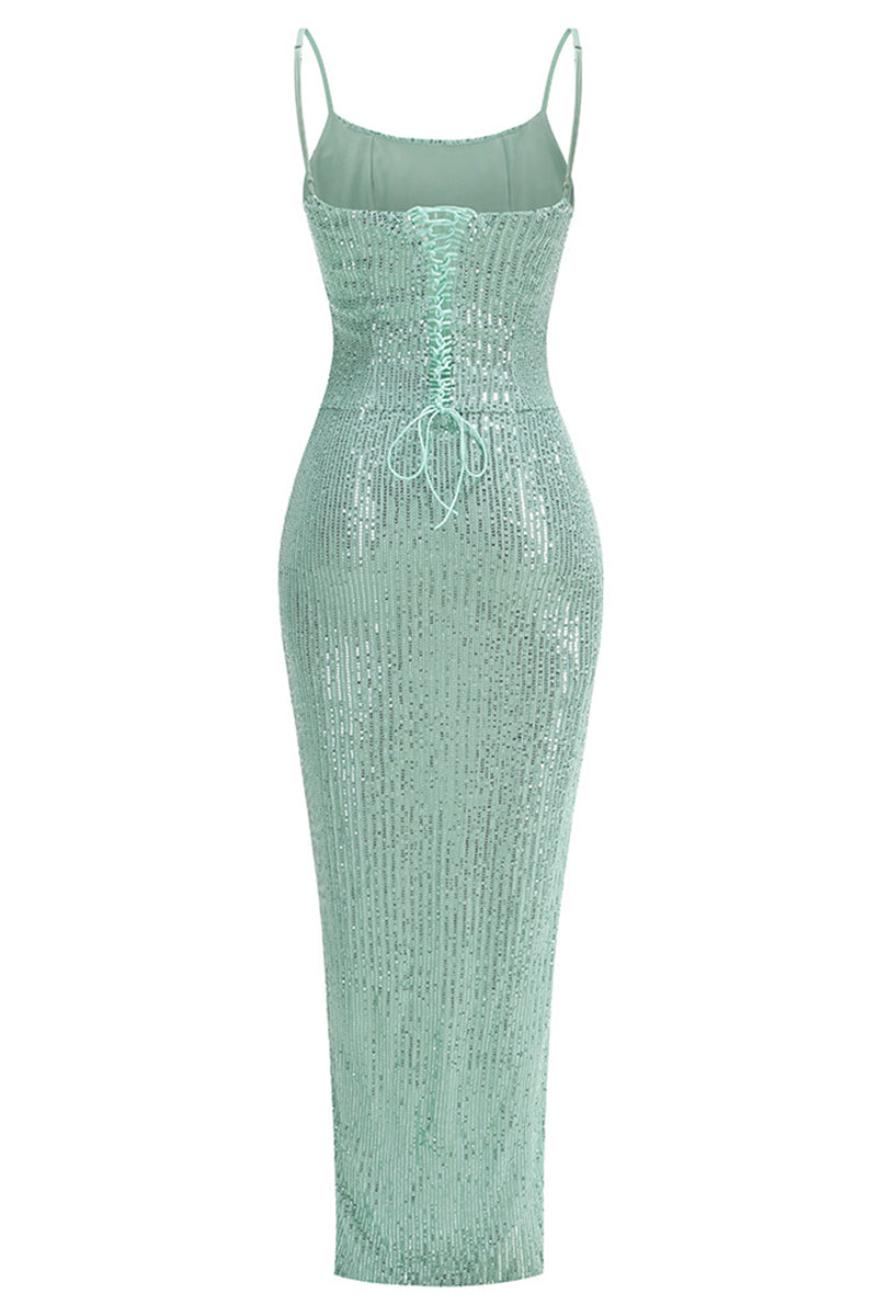 Your new go-to evening dress features a stunning high-slit design and a form-fitting silhouette. Effortlessly combines elegance and allure for your special occasions.