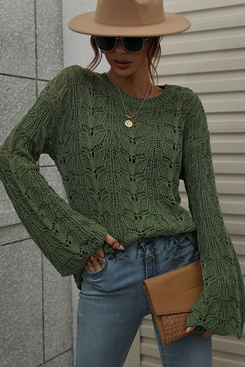 Your new statement piece, featuring intricate lace-knit detailing for a chic and stylish look. Perfect for pairing with jeans or skirts, seamlessly taking you from casual day outings to evening plans.