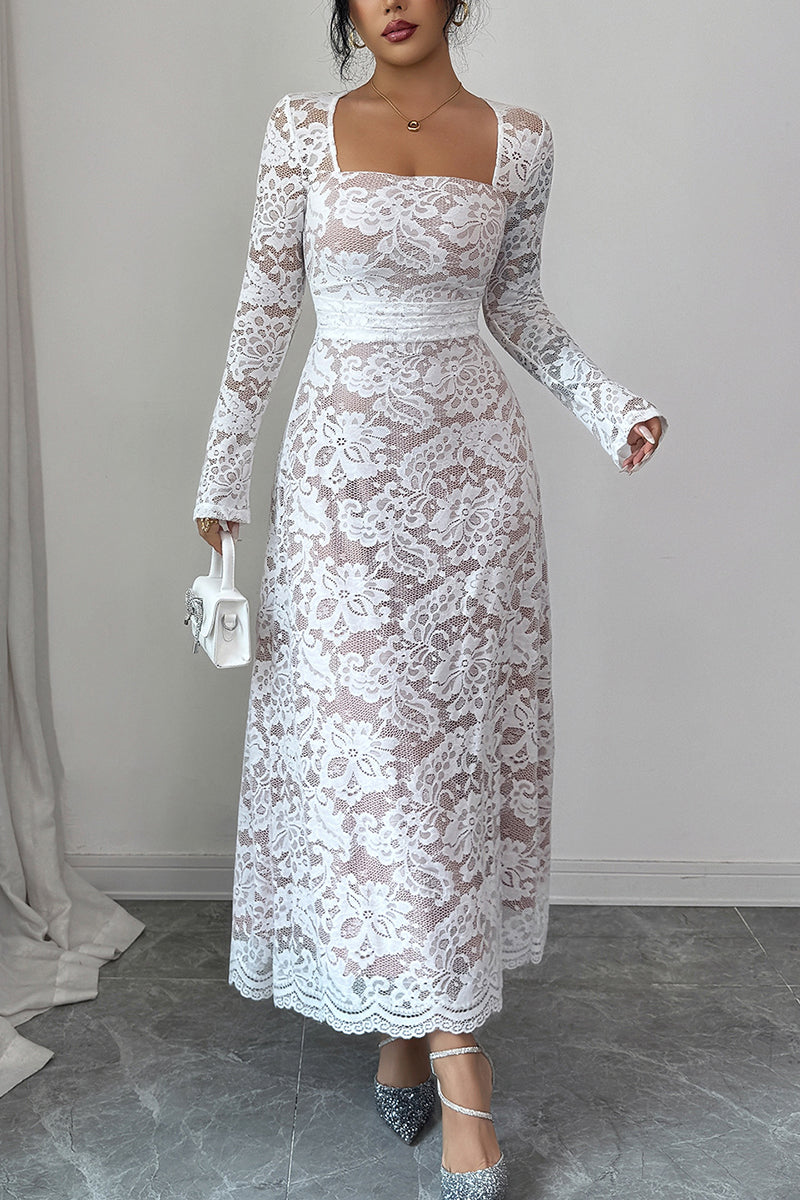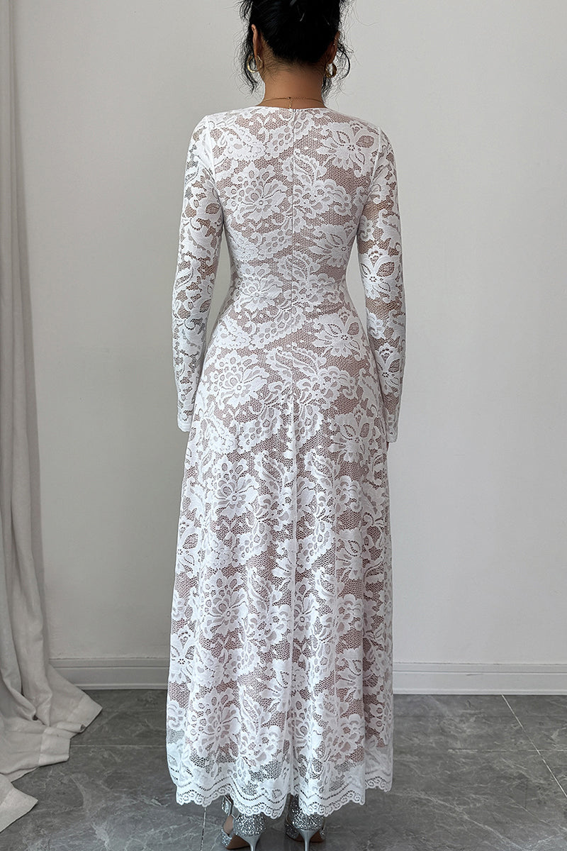 Your new go-to dress features a sophisticated lace overlay and graceful long sleeves. Perfectly suited for casual outings, effortlessly blending comfort with classic style.