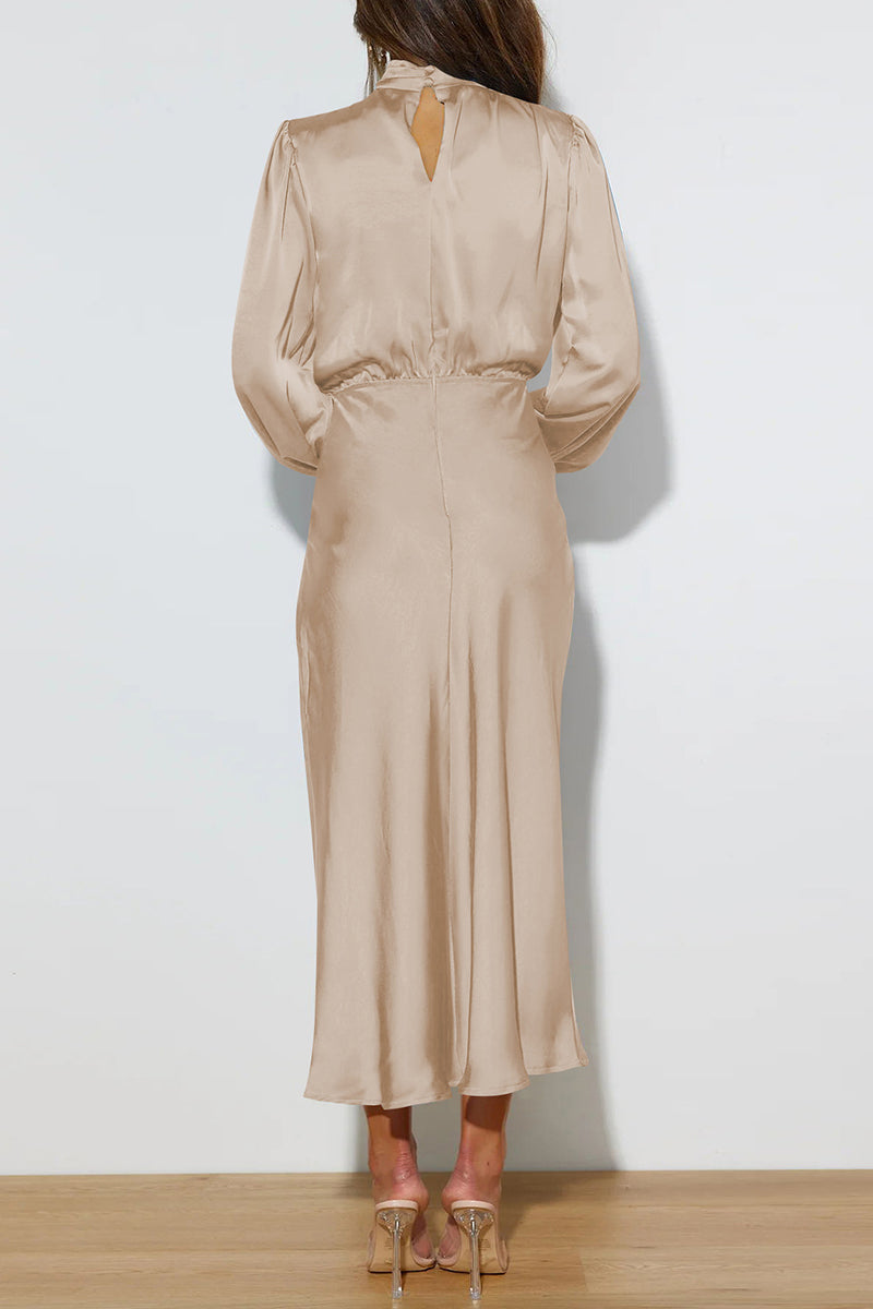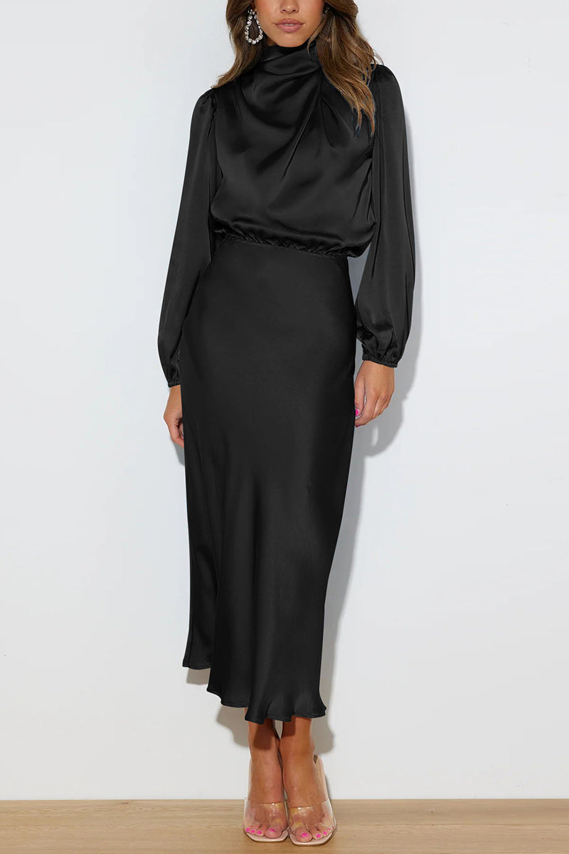 Your new favorite casual dress features a graceful high neckline and fluid silhouette. Perfect for daytime elegance or evening charm, fitting effortlessly into any setting.