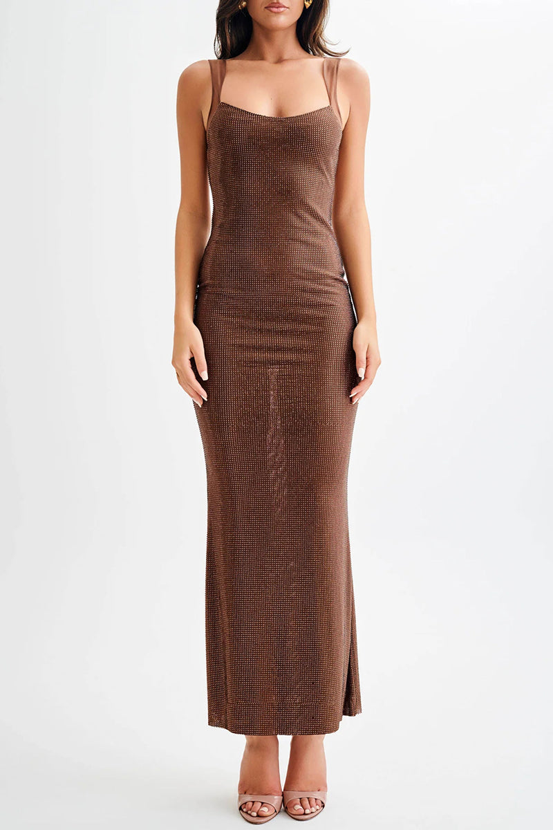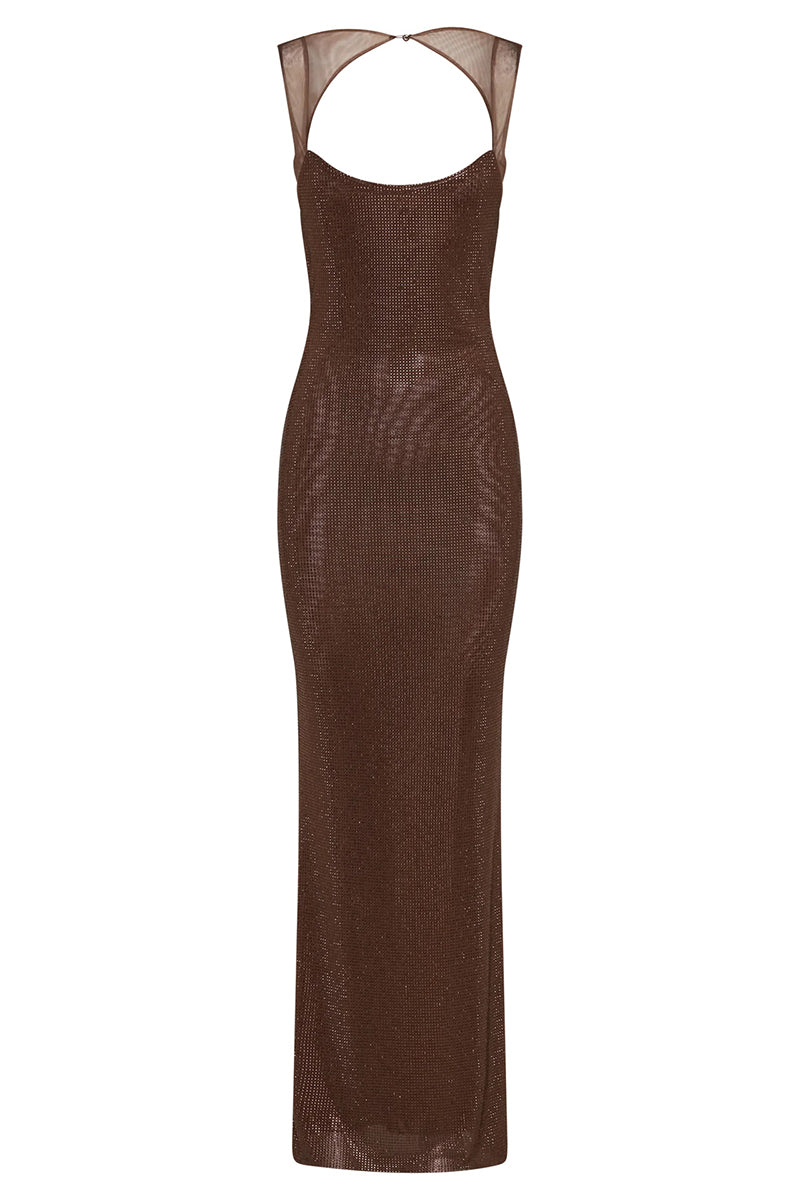 Your new evening gown features a stunning sheer design that captivates with every step. Perfect for formal occasions, combining sophistication with a contemporary edge.
