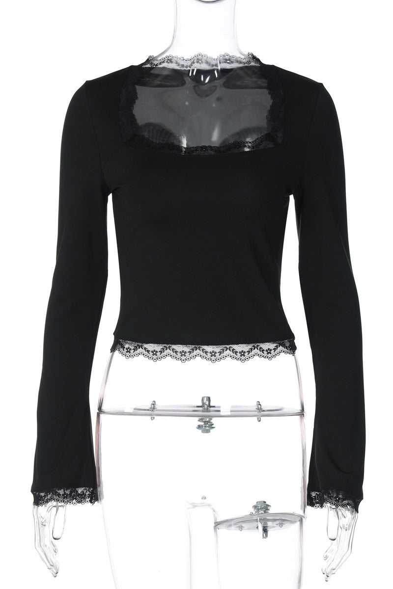 Your new stylish top features a delicate sheer lace detail for added elegance. Perfect for both casual and dressy occasions, seamlessly fitting into your wardrobe.