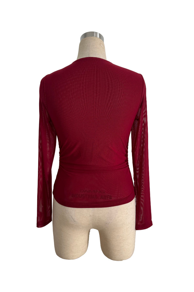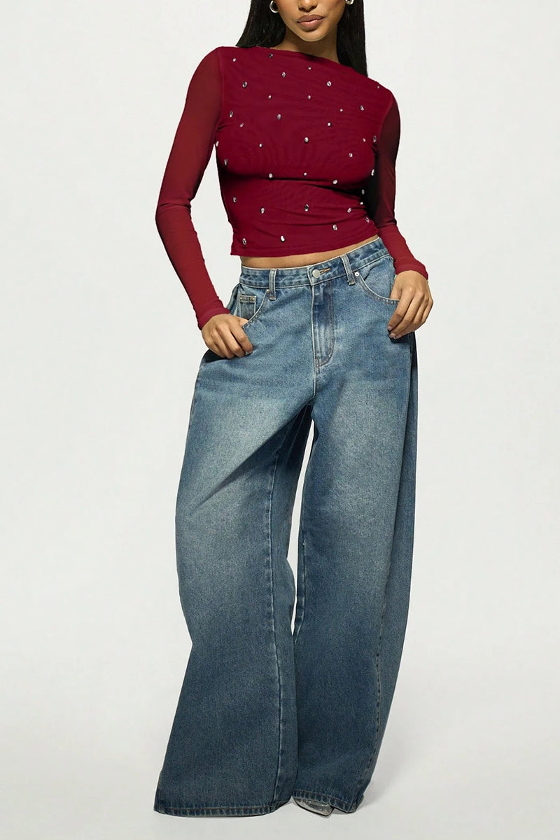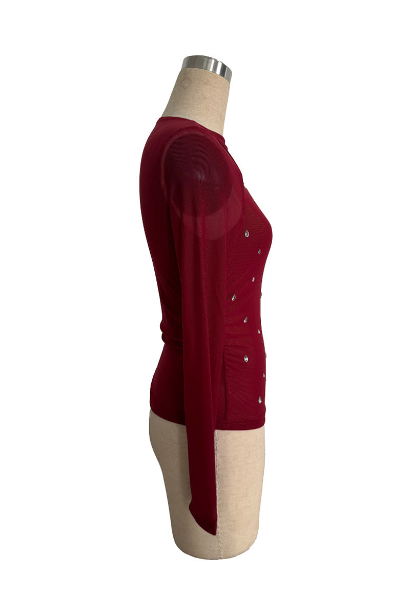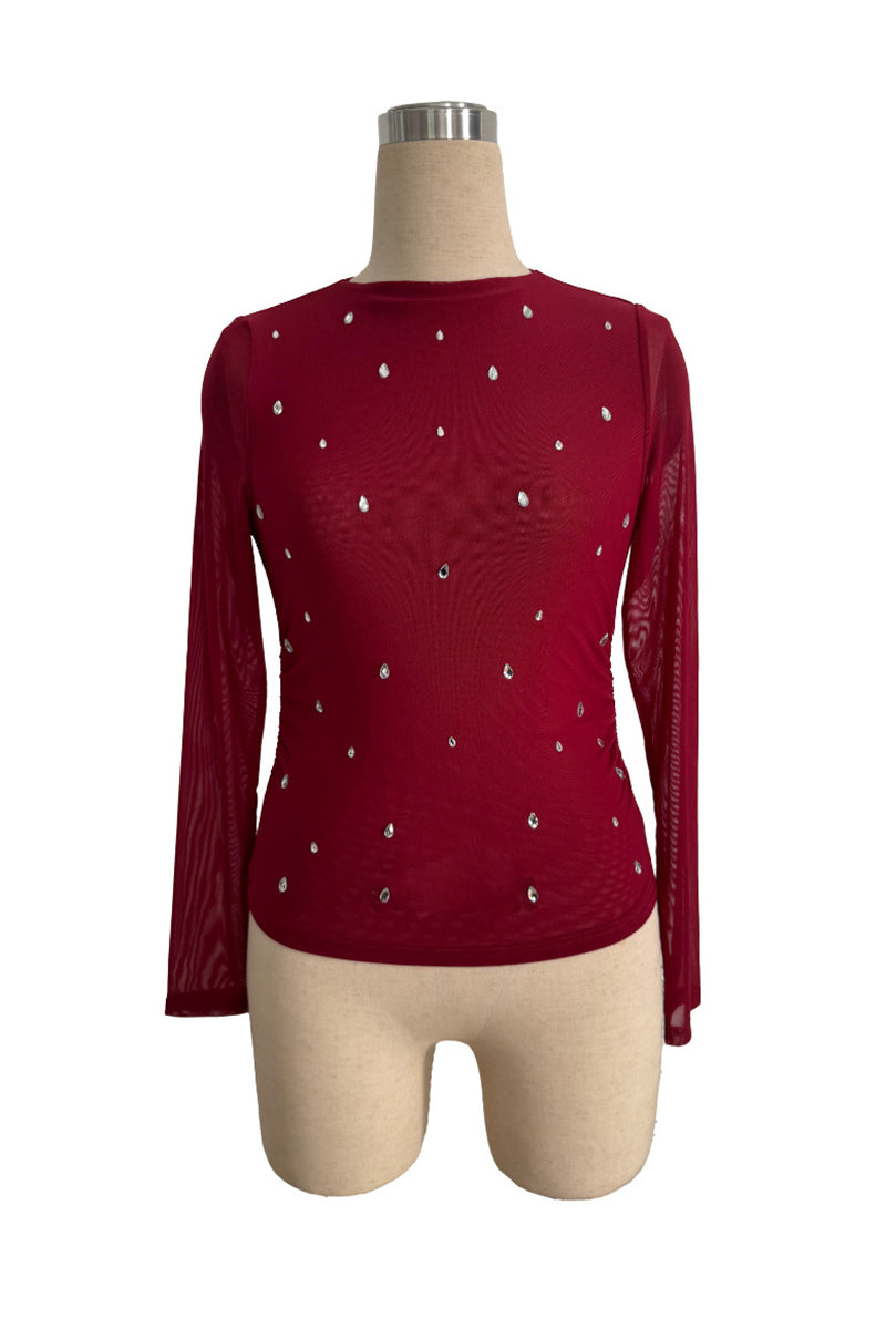Your new favorite blouse features eye-catching embellishments and chic sheer sleeves. Effortlessly elevates your style for both casual outings and evening events.