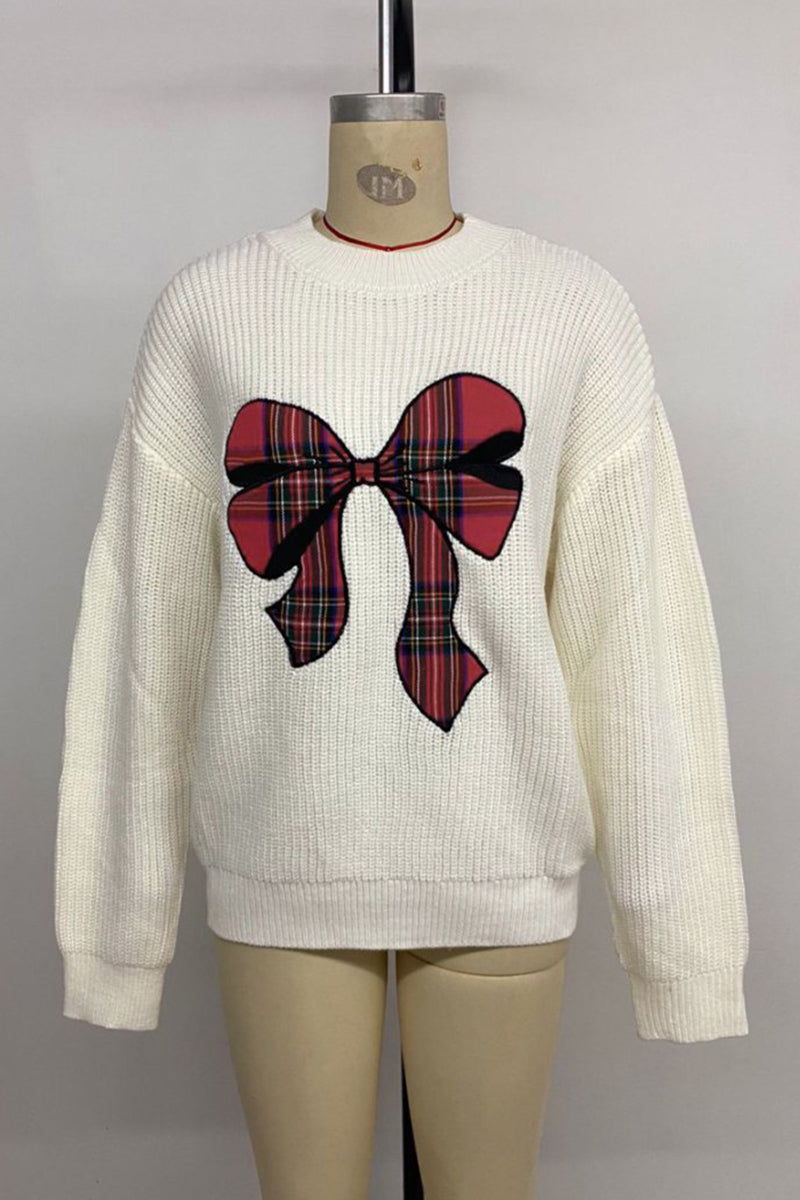 Your new go-to sweater showcases a charming bow design. Effortlessly transitions from casual gatherings to holiday festivities.