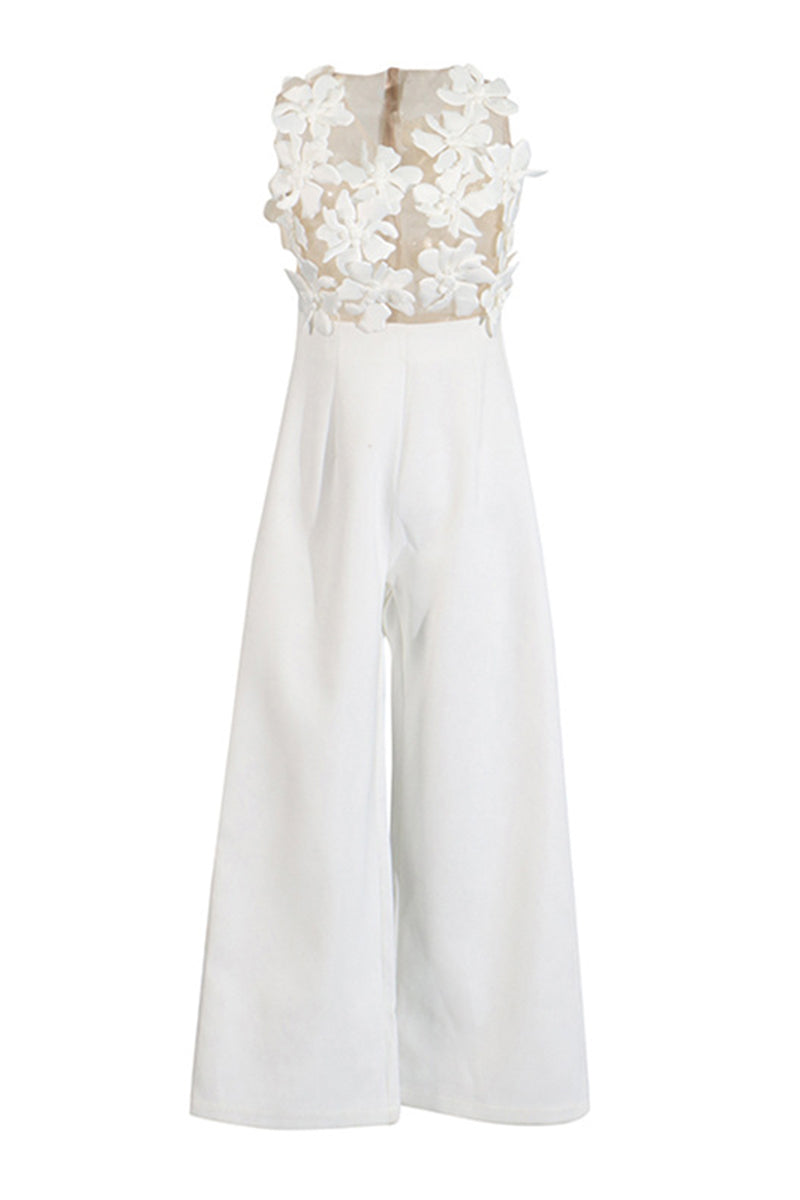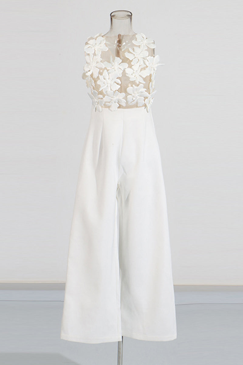 Your new statement jumpsuit features an elegant floral applique design. Perfect for special occasions, it combines style with sophistication effortlessly.