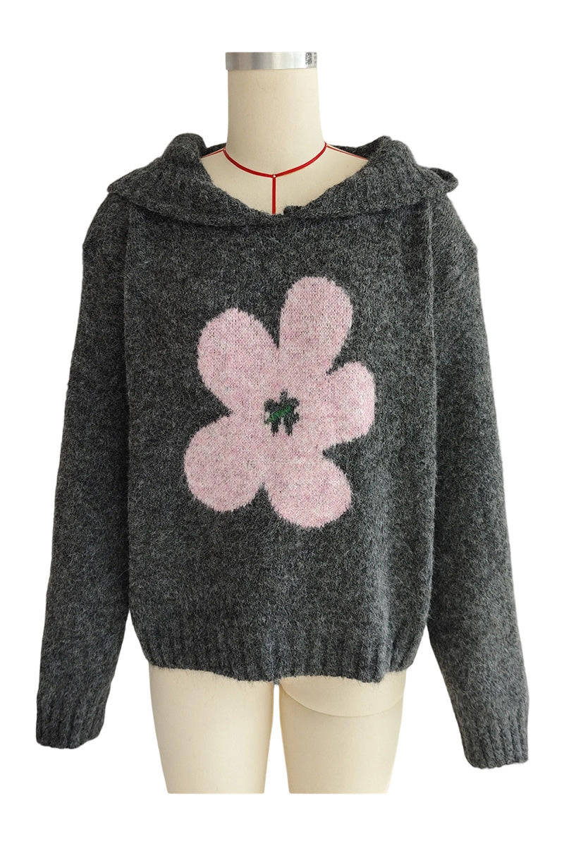 • Floral Knit Sweater with Hood