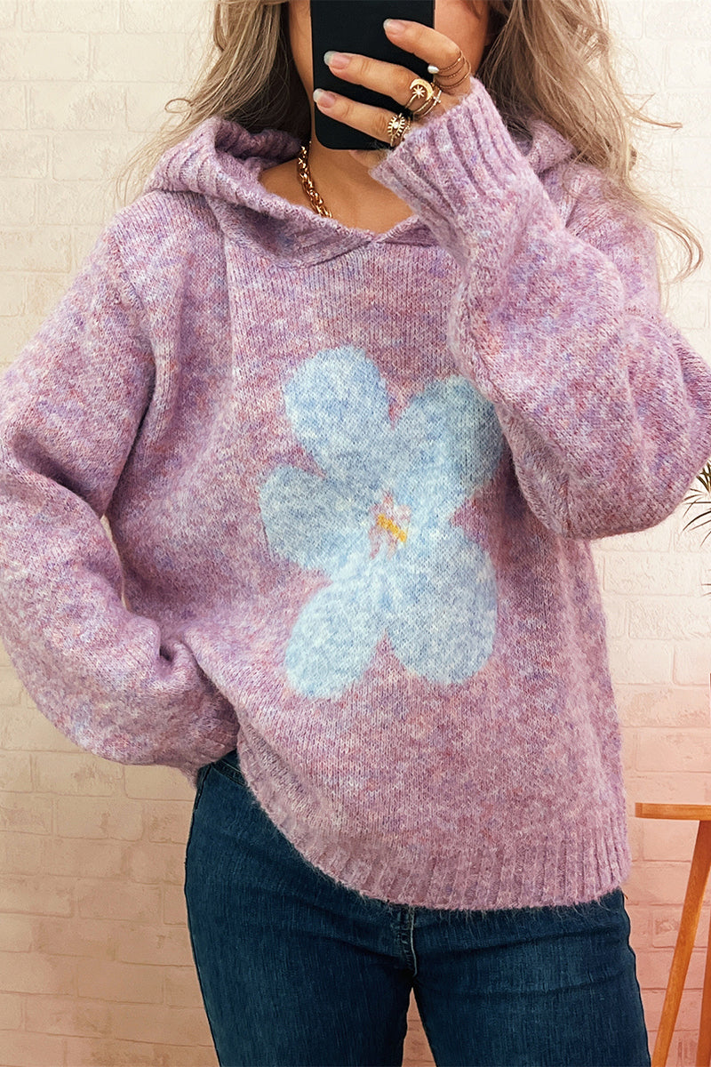Floral Knit Sweater with Hood