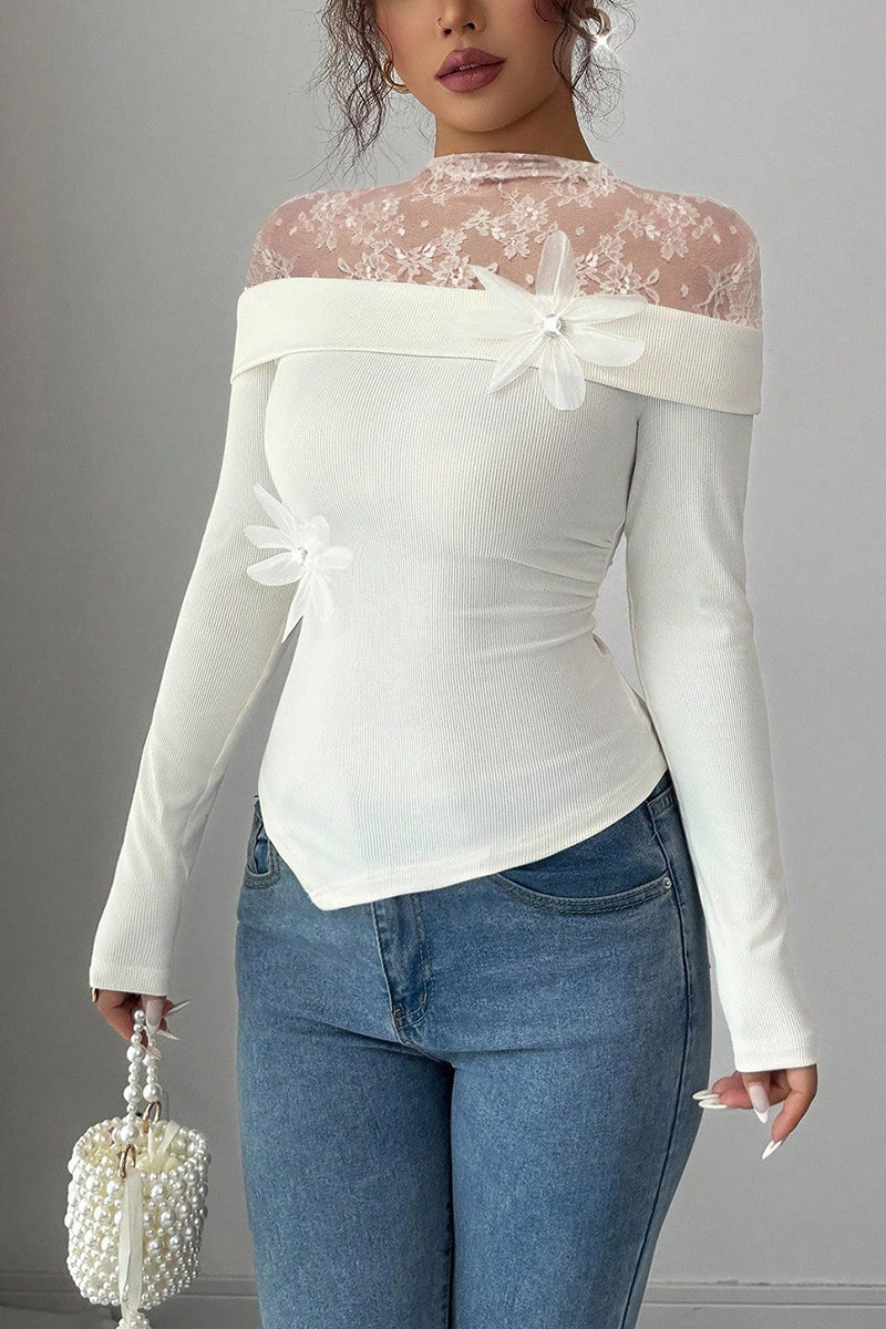 - Floral Lace Long Sleeve T-Shirt